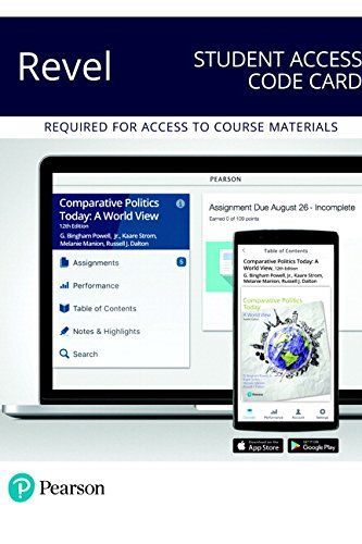 A thematic overview of comparative politics coupled with country studies that bring theory to life Revel(TM) Comparative Politics Today: A World View combines a comprehensive thematic overview of the discipline with in-depth country studies written by expert scholars in their respective fields. Emphasizing the similarities as well as the differences among governments around the globe, lead authors G. Bingham Powell, Jr., Kaare W. Strøm, and Melanie Manion help students to sort through the world's complexity and to recognize patterns that lead to genuine political insight. Focusing as in previous editions on the challenges of democratization and globalization, the 12th Edition presents significantly updated coverage in the 12 detailed country studies as well as contemporary data throughout. Revel is Pearson's newest way of delivering our respected content. Fully digital and highly engaging, Revel replaces the textbook and gives students everything they need for the course. Informed by extensive research on how people read, think, and learn, Revel is an interactive learning environment that enables students to read, practice, and study in one continuous experience -- for less than the cost of a traditional textbook. NOTE: Revel is a fully digital delivery of Pearson content. This ISBN is for the standalone Revel access card. In addition to this access card, you will need a course invite link, provided by your instructor, to register for and use Revel.