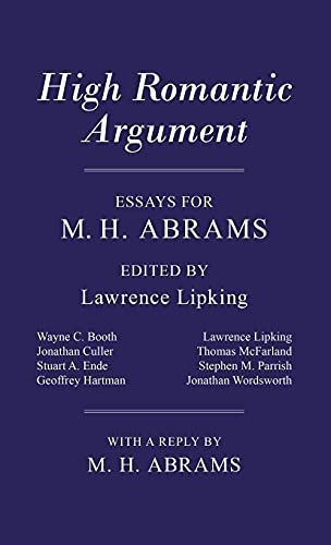 M. H. Abrams's writings on the Romantics have had an incalculable influence on the literary history of his time. High Romantic Argument, treating as it does various aspects of Abrams's work, is in a sense an appraisal of that history. Arising from a conference held in his honor at Cornell University in the spring of 1978, it is made up of essays by six distinguished contributors who explore important critical questions related directly or indirectly to Abrams's work and its broader implications. The essays deal with Wordsworth as a prophet (Geoffrey Hartman) and as a poet of "silence" (Jonathan Wordsworth); history as metaphor (Wayne C. Booth); the nature of the critical canon (Thomas McFarland); the personal element in literary history (Lawrence Lipking); and the relation of Abrams's work to current developments in literary criticism (Jonathan Culler). Two central themes run throughout: the radically metaphorical nature of Romantic thought and the tendency of today's students to find Romanticism less rational than Abrams does. While the contributors do not always agree with one another, all are keenly aware of the contemporary challenge to humanistic values. A highlight of this book is the text of Abrams's masterly reply, delivered extemporaneously at the end of the conference. Other elements include a bibliography by Stuart A. Ende, a preface by Stephen M. Parish, and an editor's note.