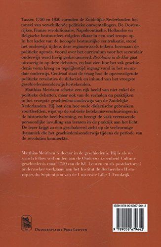 Verrassend portret van de politieke debatten en didactische praktijk in het eerste geschiedenisonderwijs Tussen 1750 en 1850 vormden de Zuidelijke Nederlanden het toneel van verschillende politieke omwentelingen. De Oostenrijkse, Franse revolutionaire, Napoleontische, Hollandse en Belgische bestuurders volgden elkaar in een snel tempo op. In het kader van de beoogde bestuurlijke centralisatie, stond het onderwijs tijdens deze regimewissels telkens bovenaan de politieke agenda. Vooral over het curriculum voor het secundair onderwijs werd hevig gediscussieerd. Revoluties in de klas gaat uitvoerig in op deze debatten, en laat zien hoe het vak geschiedenis vorm kreeg en tegelijkertijd ingang vond in het secundair onderwijs. Centraal staat de vraag hoe de opeenvolgende politieke revoluties de didactiek en inhoud van het vroegste geschiedenisonderwijs hertekenden. Matthias Meirlaen schetst een rijk beeld van niet enkel de politieke debatten, maar ook van de verhalen en praktijken in het vroegste geschiedenisonderwijs van de Zuidelijke Nederlanden. Hij laat zien hoe oude didactische gebruiken voortleefden, wijst op de subtiele betekenisverschuivingen in de historische beeldvorming, en brengt de vaak verrassende persoonlijke invulling van leraren in de praktijk aan het licht. De lezer krijgt zo een geschakeerd zicht op de veelvormige dynamiek die het geschiedenisonderwijs tijdens de periode van de revoluties kenmerkte.